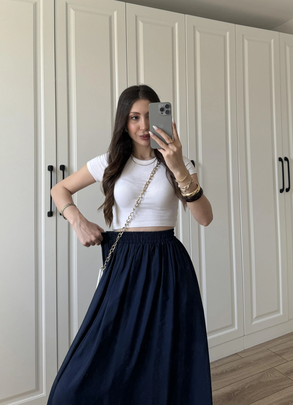 Midi Boy Şifon Astarlı Lacivert Etek