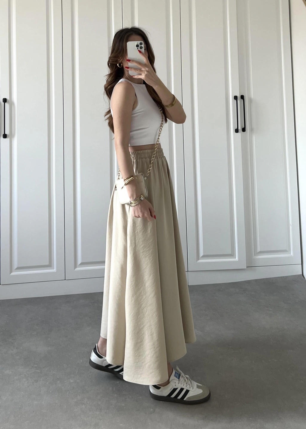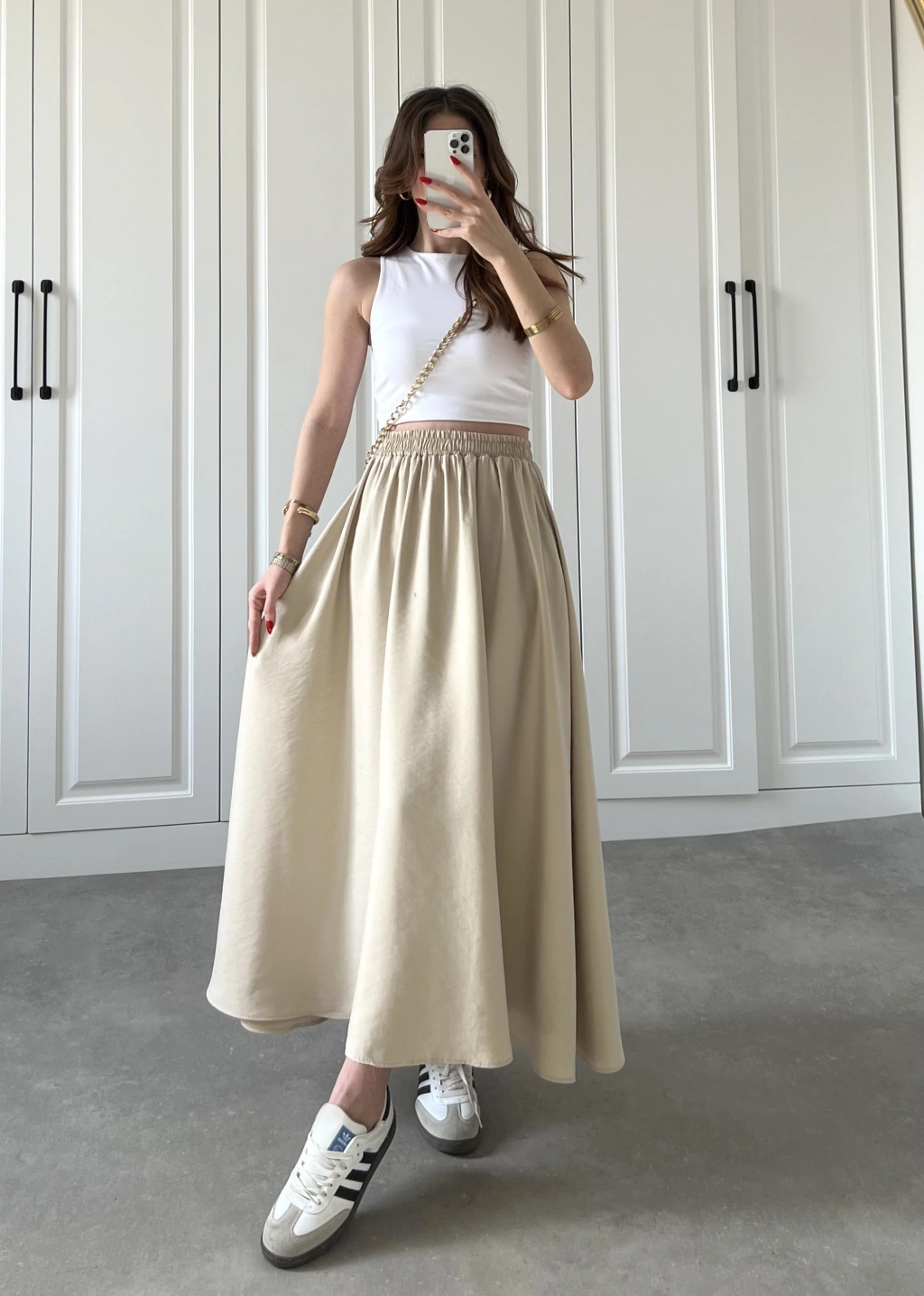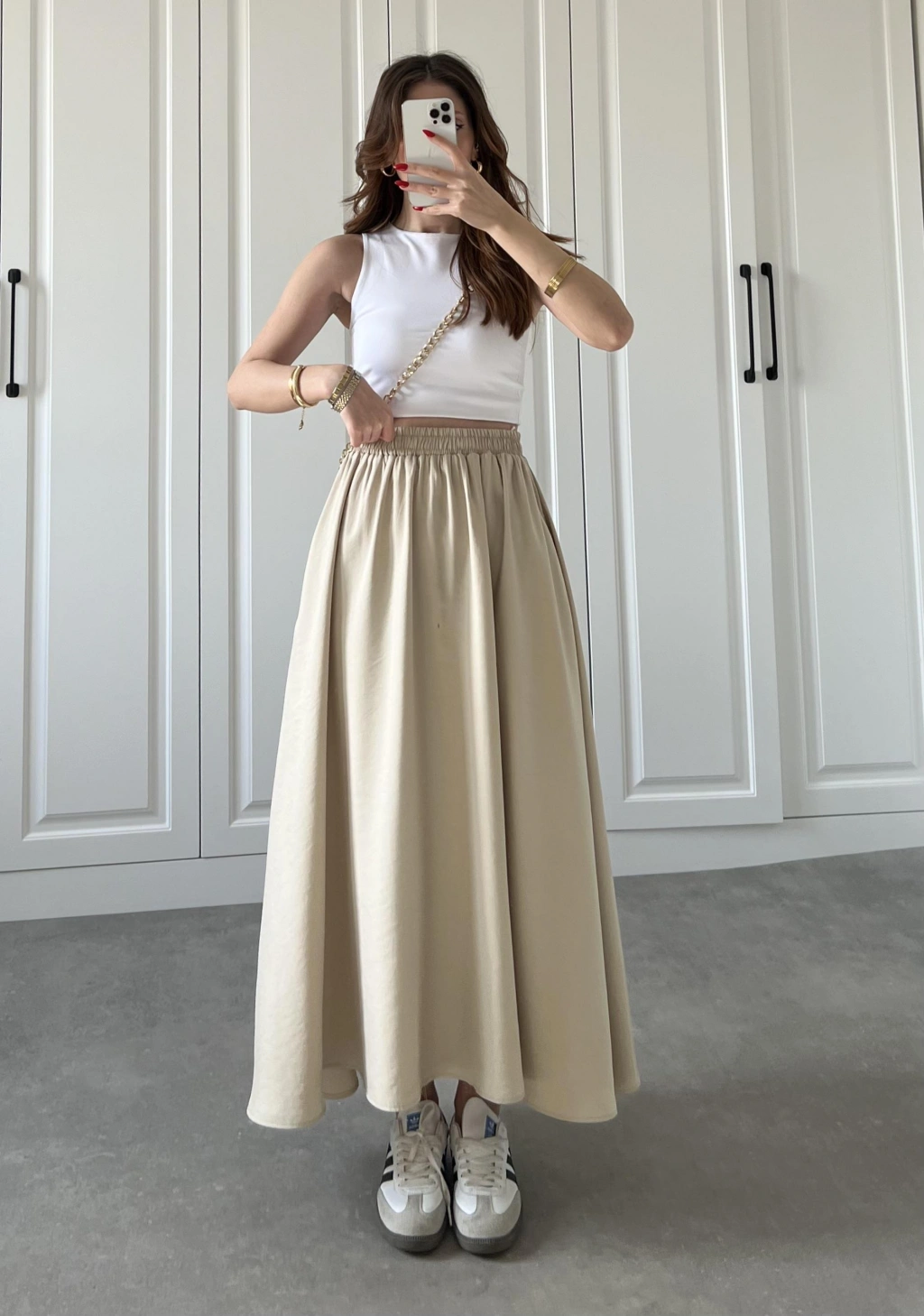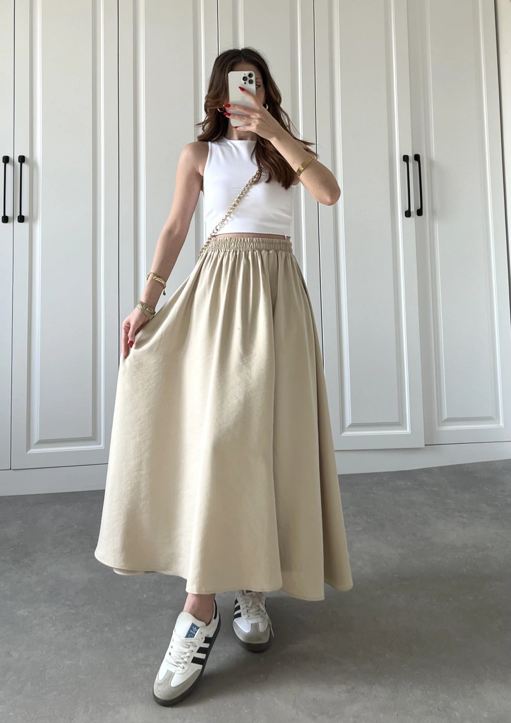 Tensel Beli Lastikli Taş Renk Kilos Etek