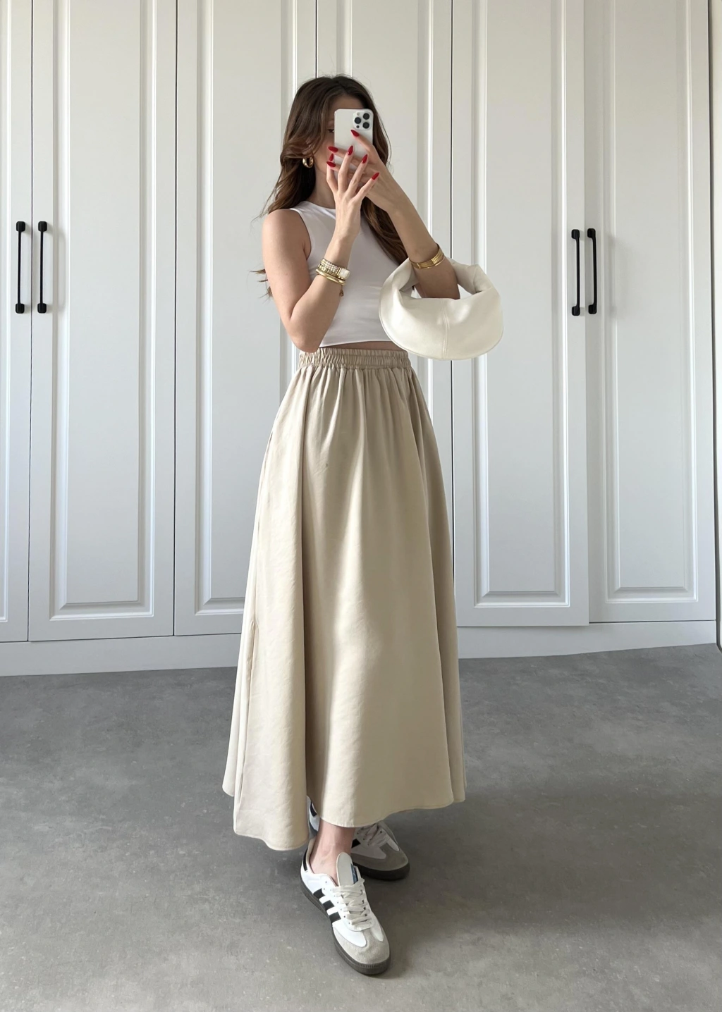 Midi Boy Şifon Astarlı Cappuccino Etek