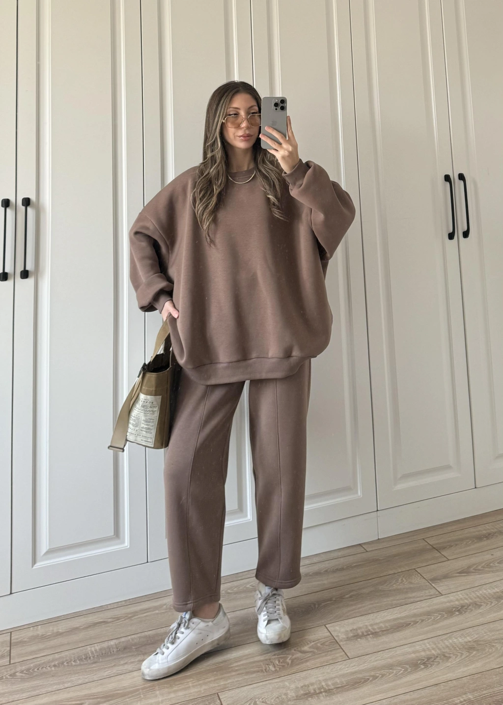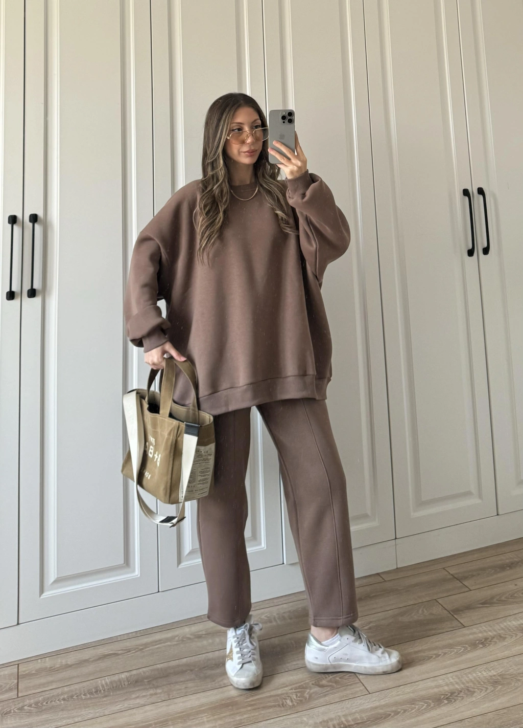 Sık Dokuma Tok Nude Yeşili Triko Takım