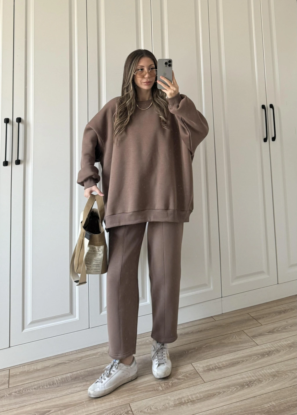 Çift Fermuarlı Antrasit Örgü Triko Takım