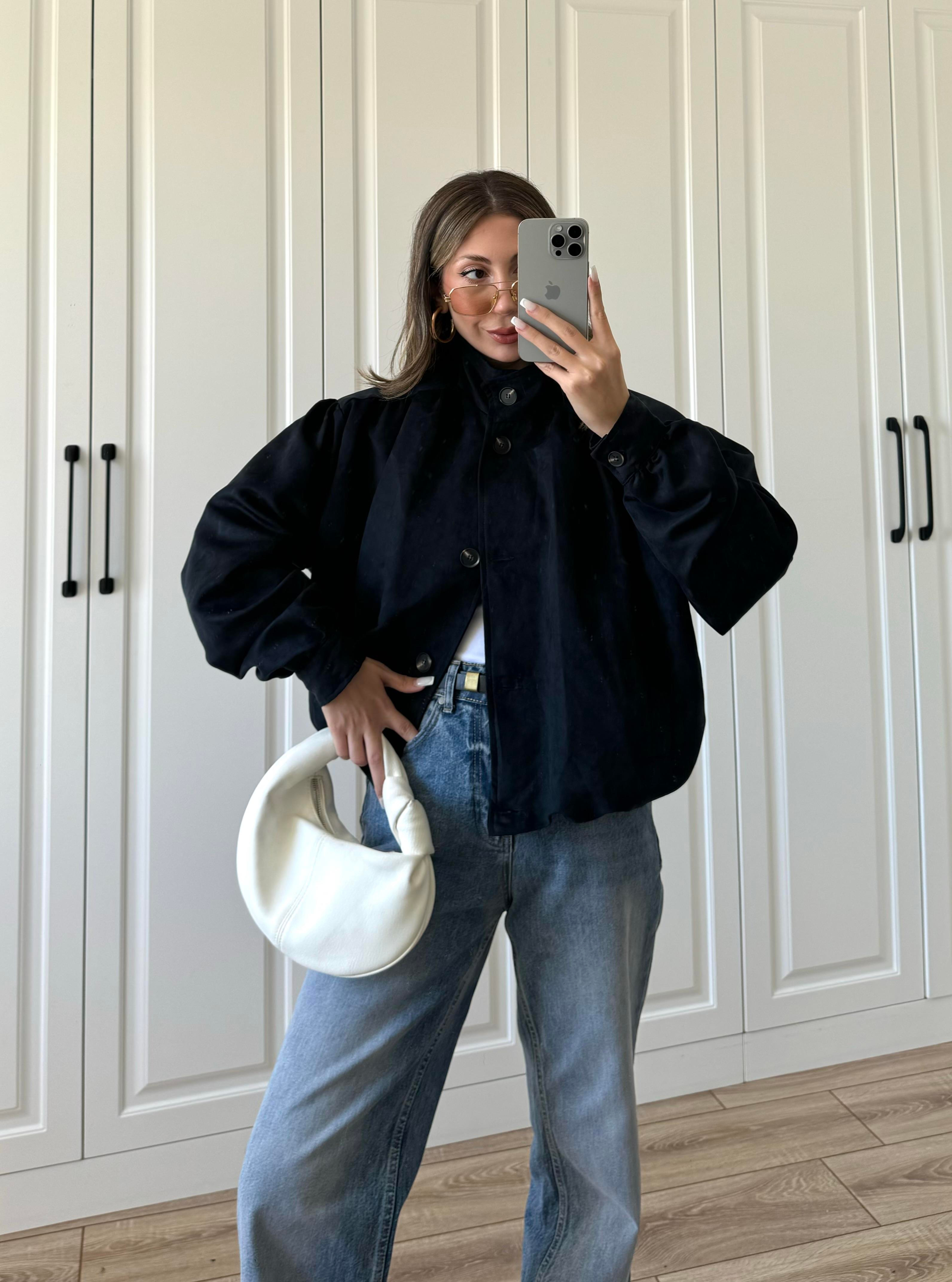 Vion Astarlı Lacivert Süet Bomber Ceket