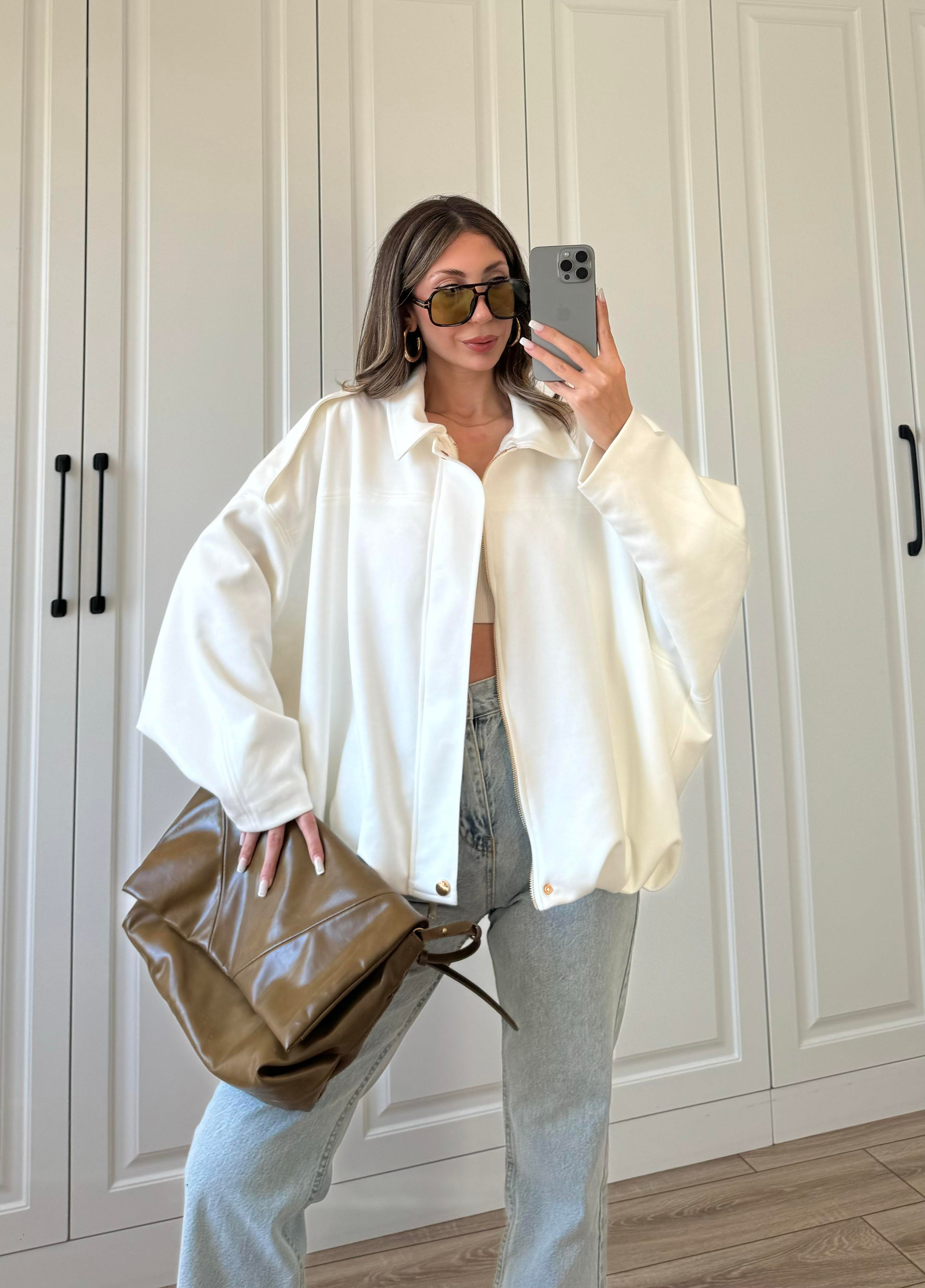 Viral Süet Astarlı Beyaz Bomber Ceket