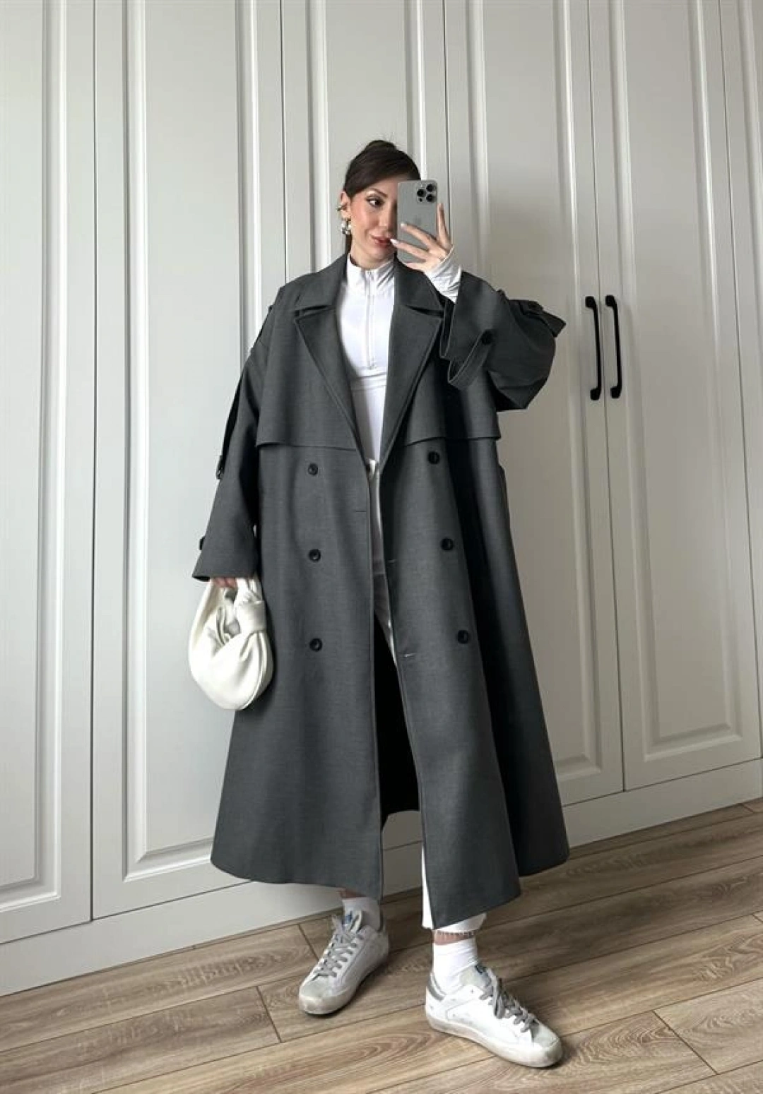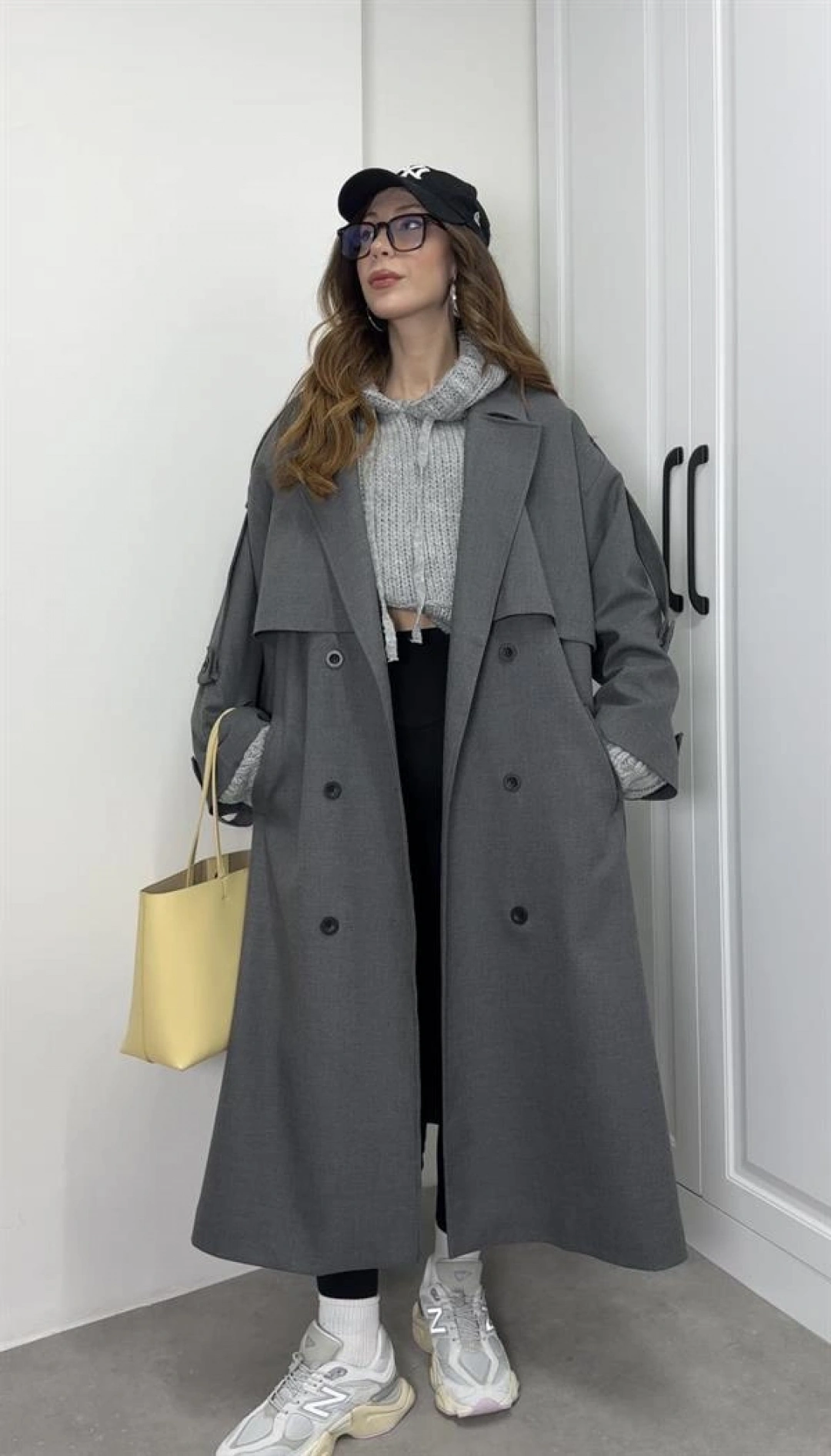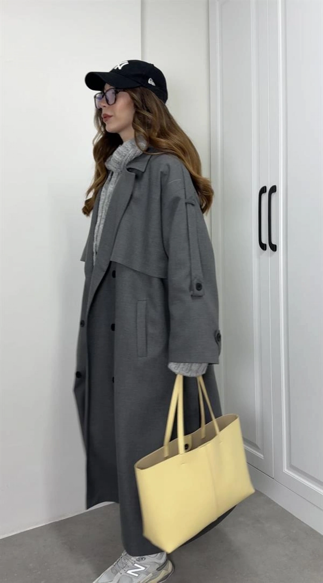 Voi Premium Yüksek Kalite Astarlı Gri Trençkot