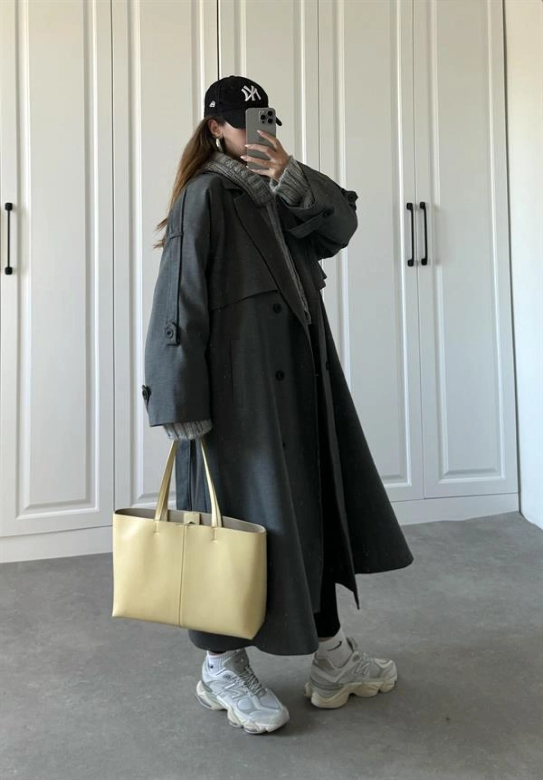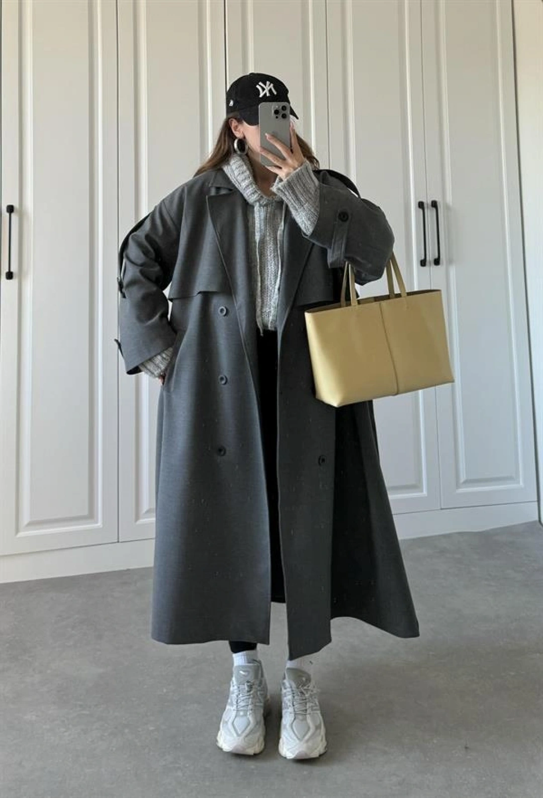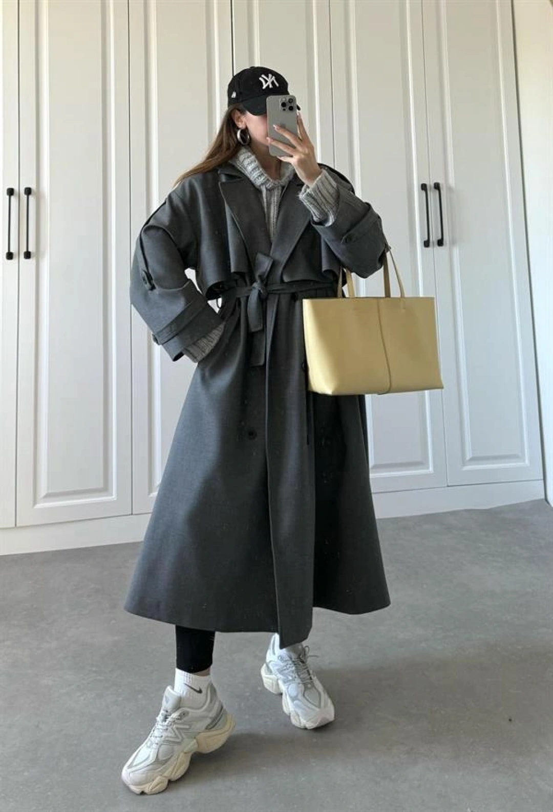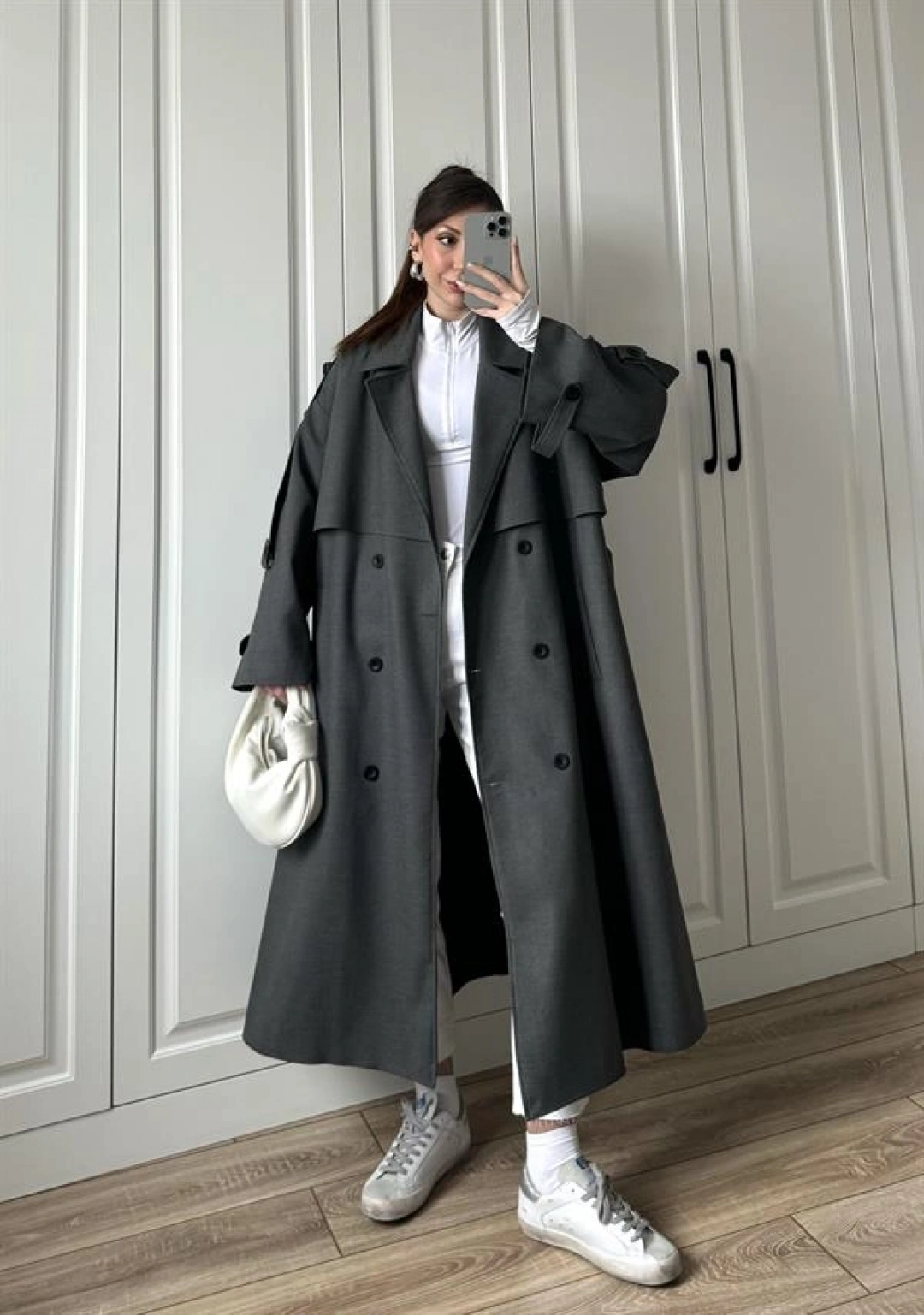 Rose Oversize Kuşaklı Antrasit Trençkot