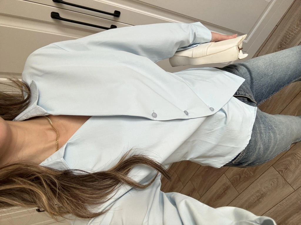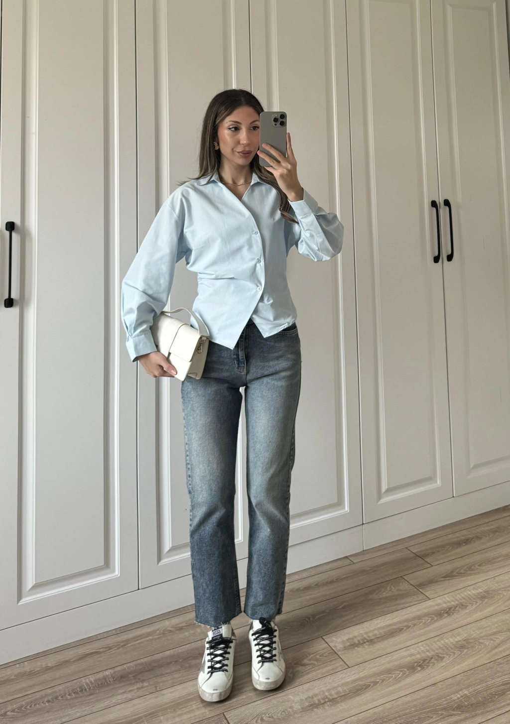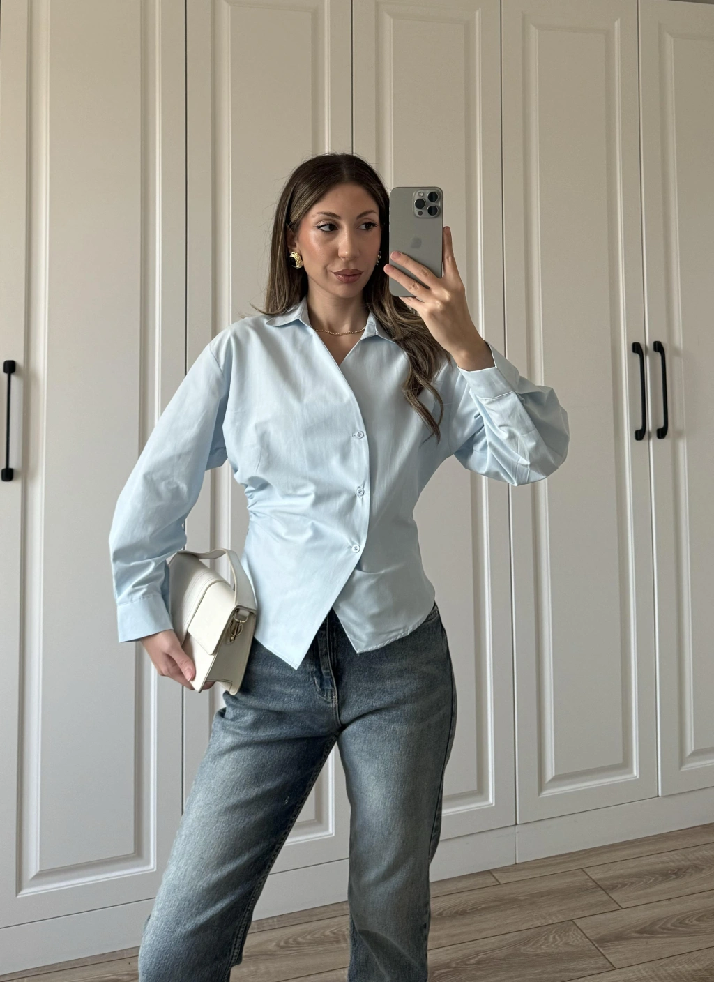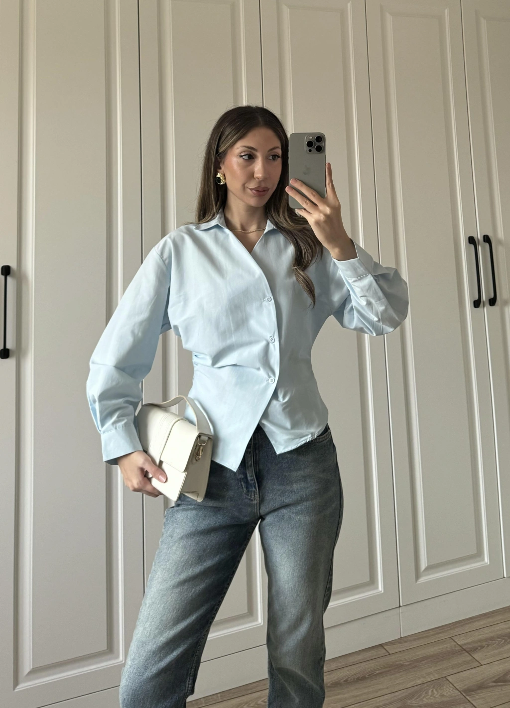 Yandan Düğmeli Çapraz Tasarım Bebe Mavi Poplin Gömlek
