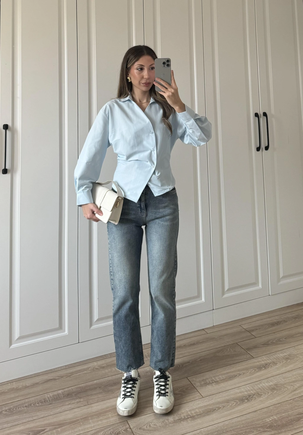 Yandan Düğmeli Çapraz Tasarım Beyaz Poplin Gömlek