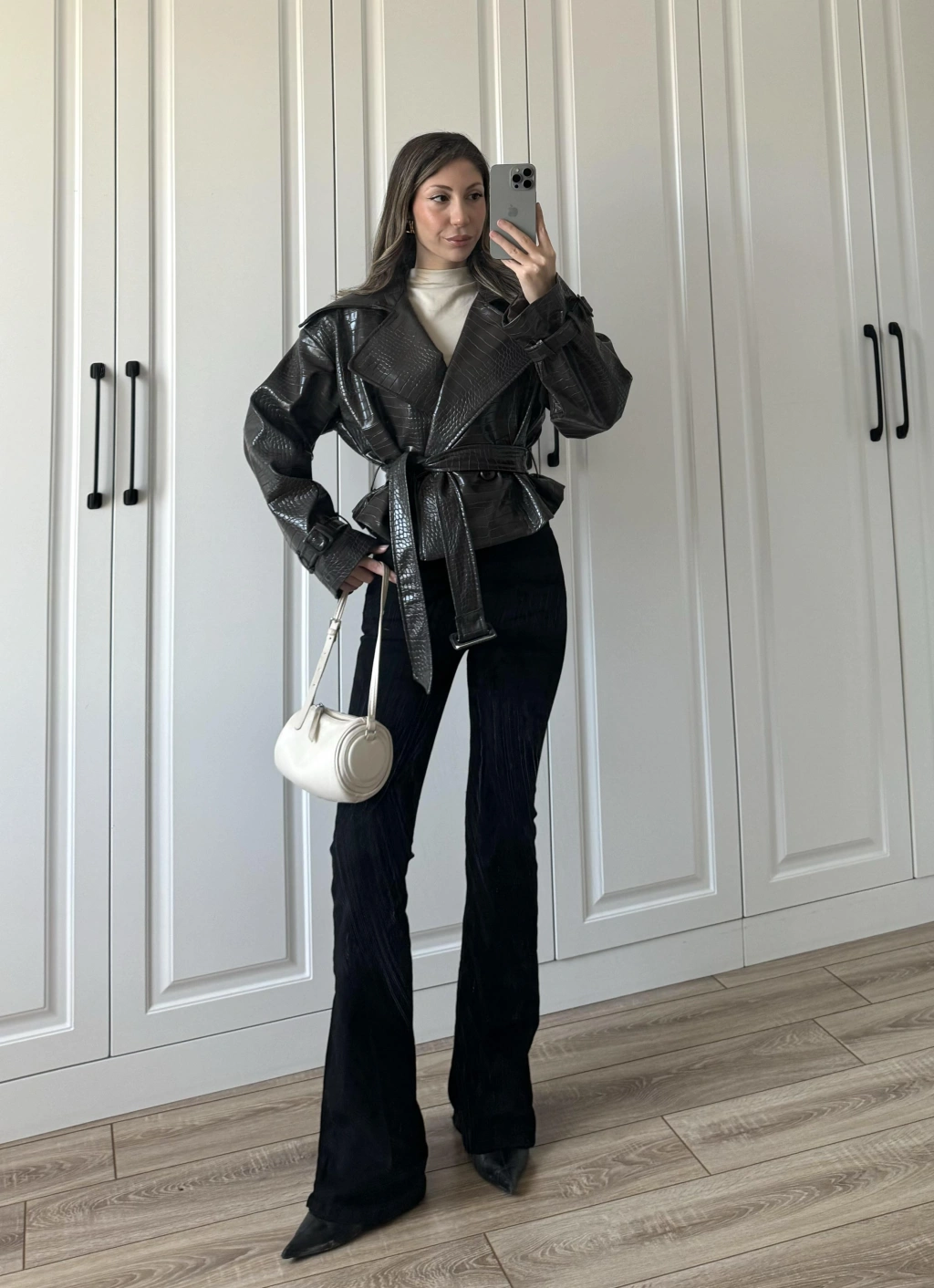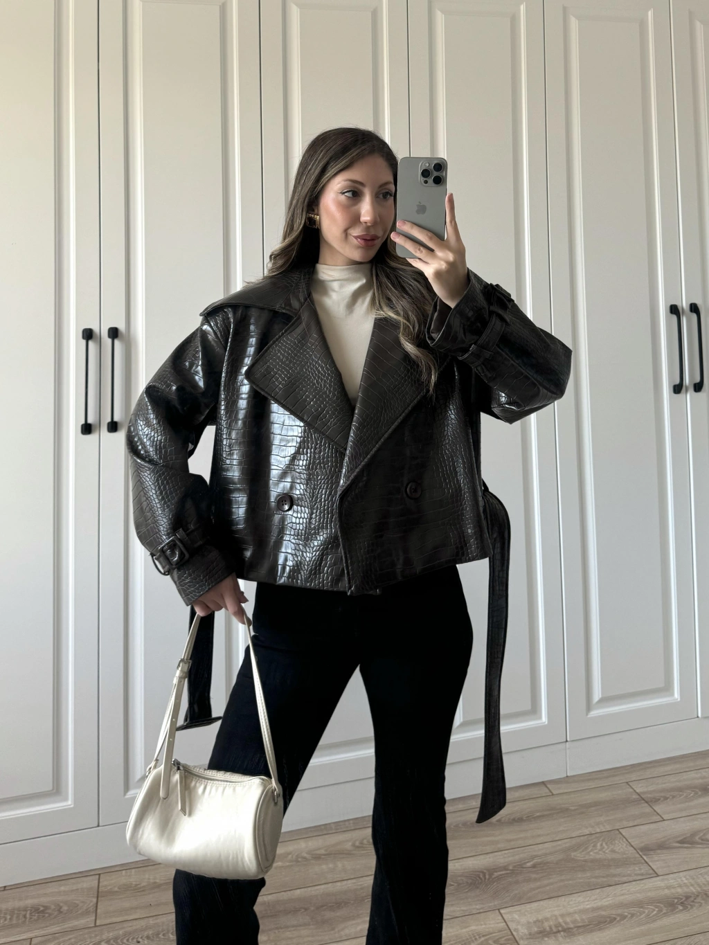 Yılan Derili Premium Siyah Deri Ceket