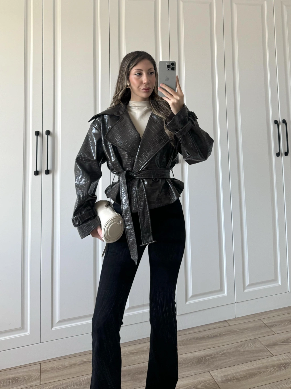Kuşaklı Astarlı Taş Kapitone Ceket