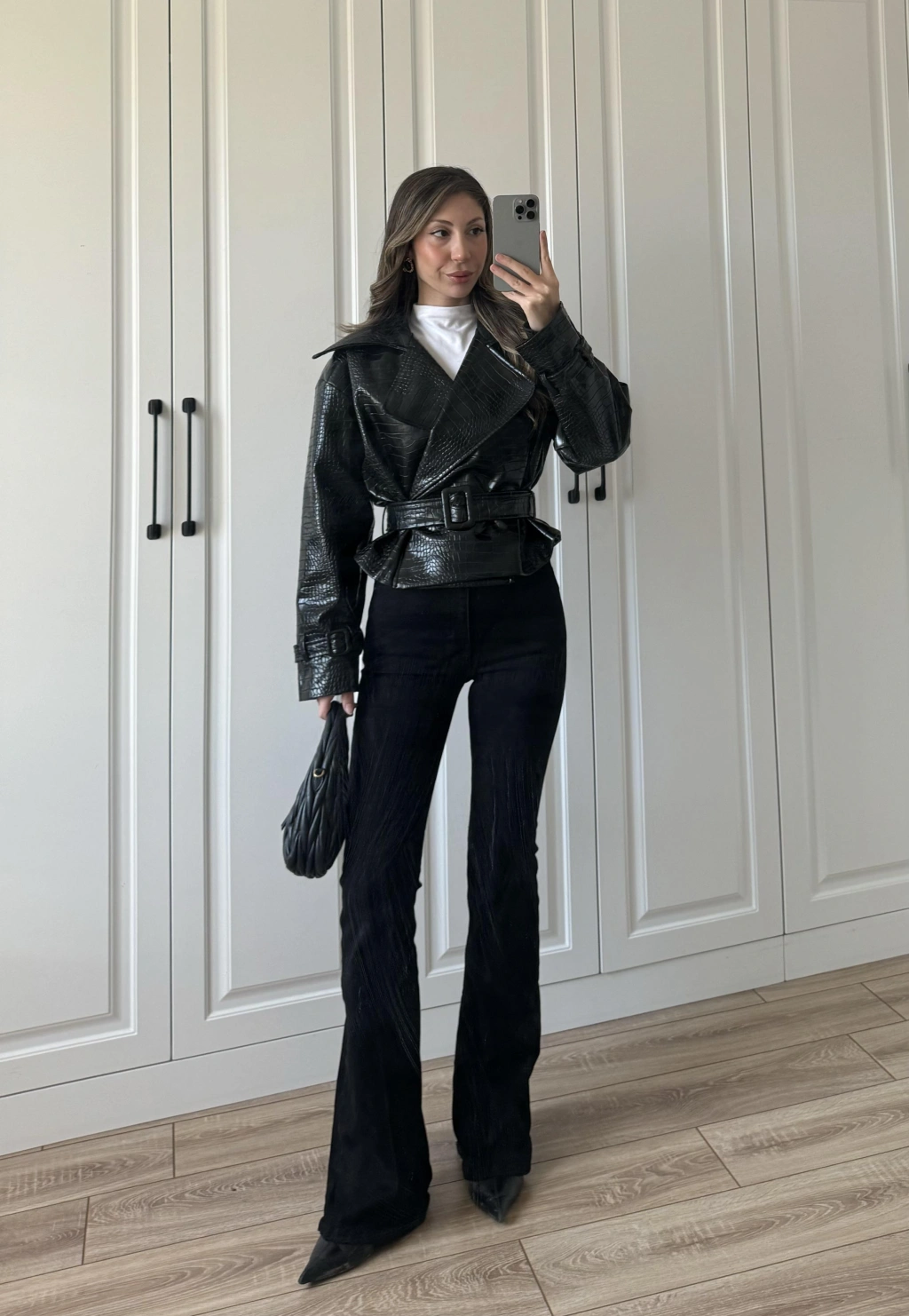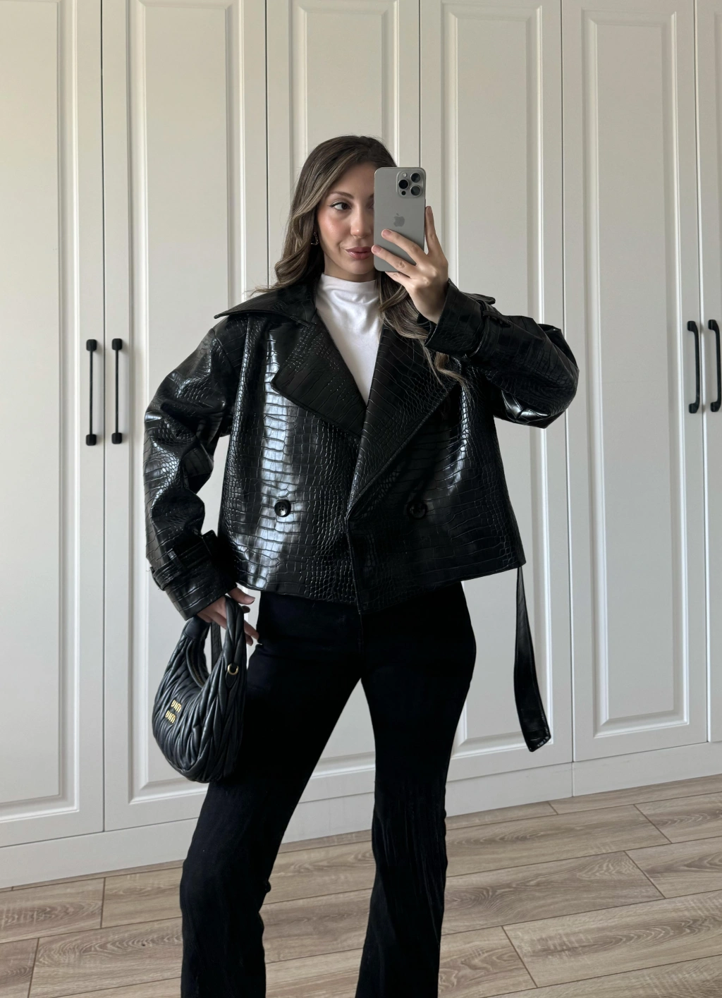 Yılan Derili Premium Siyah Deri Ceket