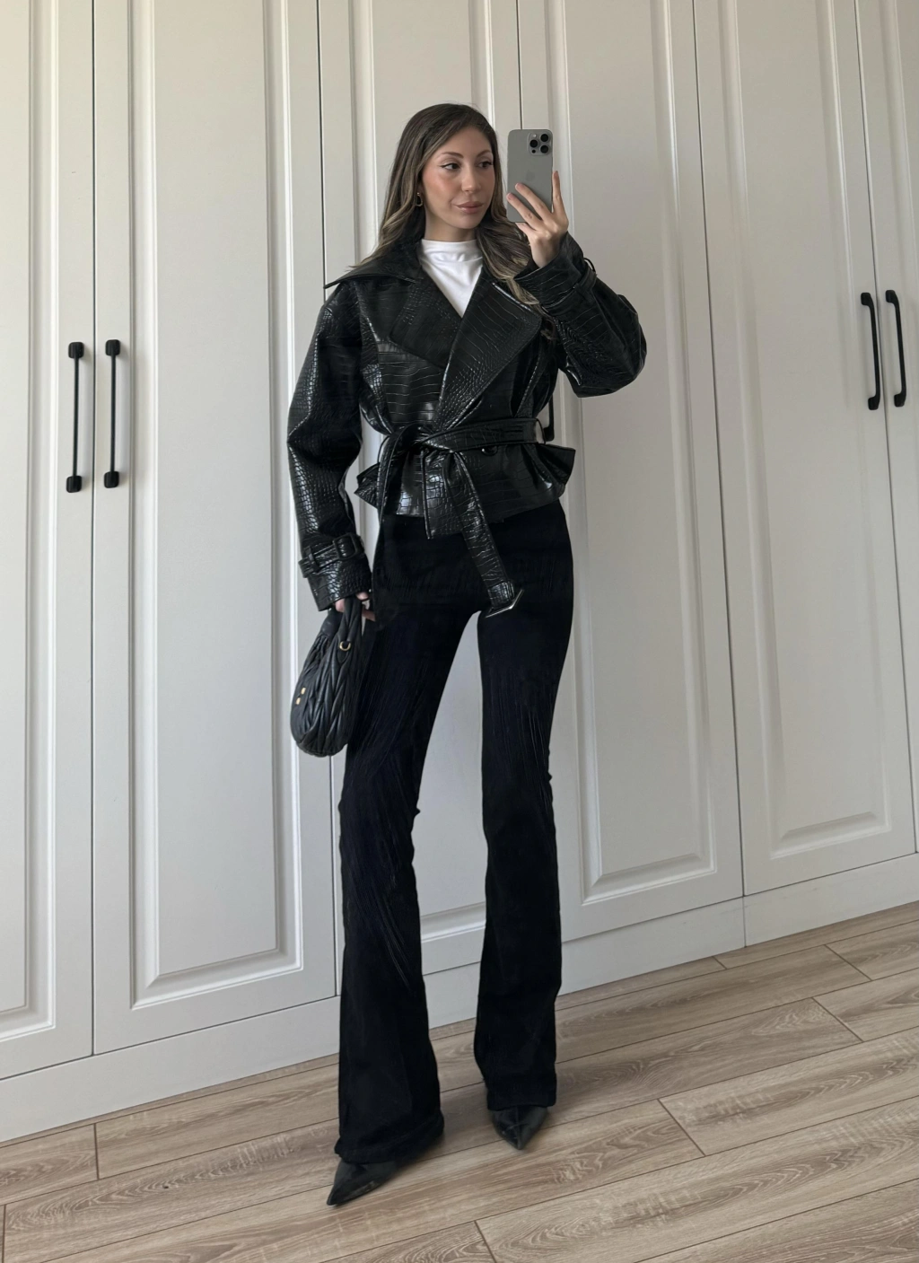 Kuşaklı Astarlı Siyah Kapitone Ceket