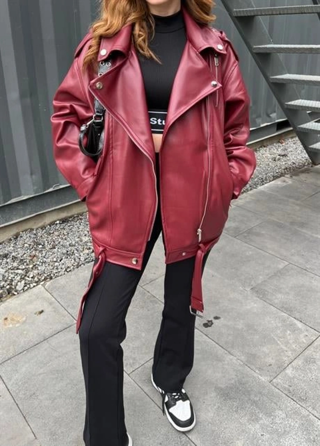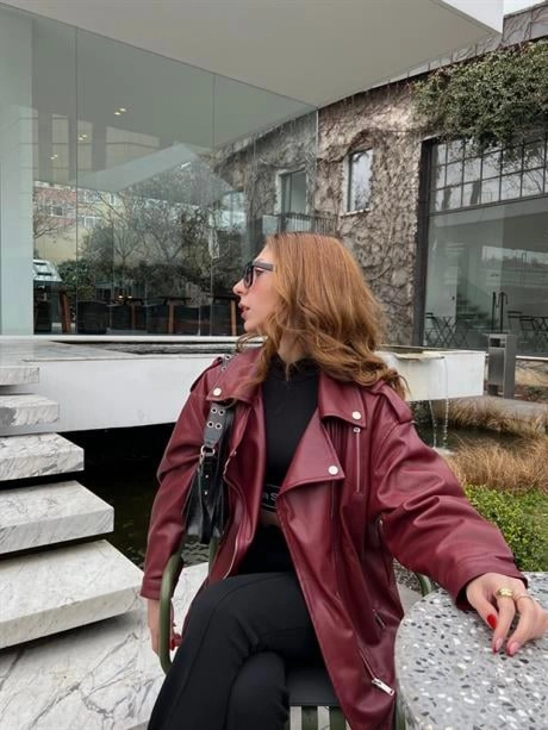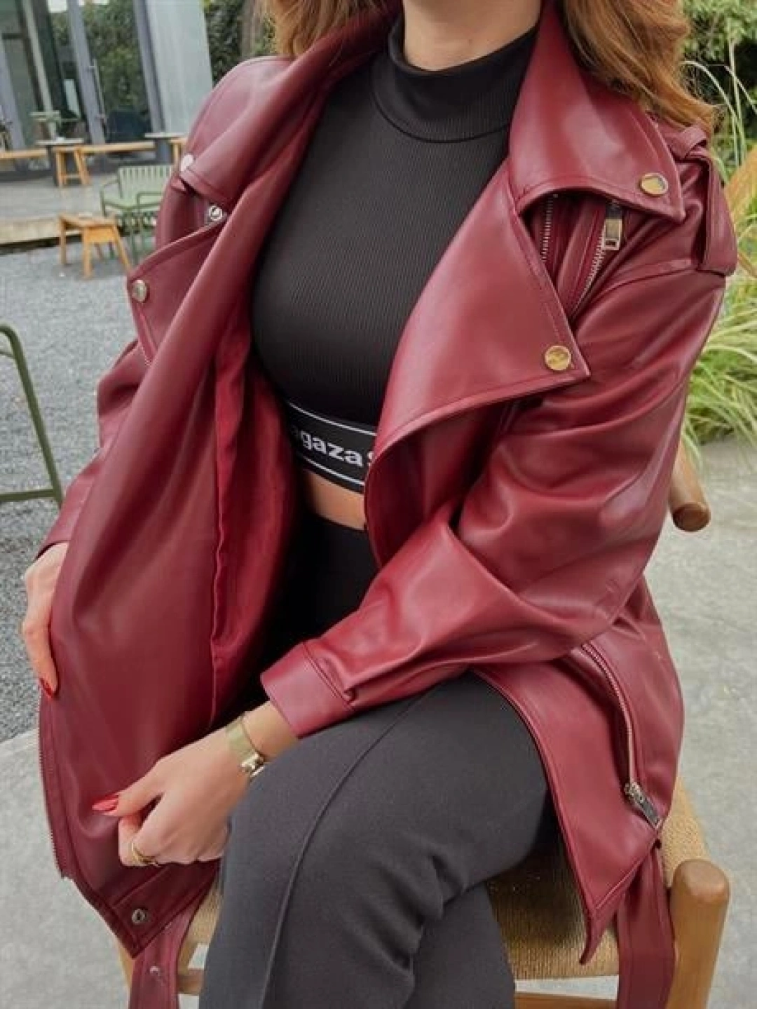 Zara Model Bordo Deri Biker Ceket