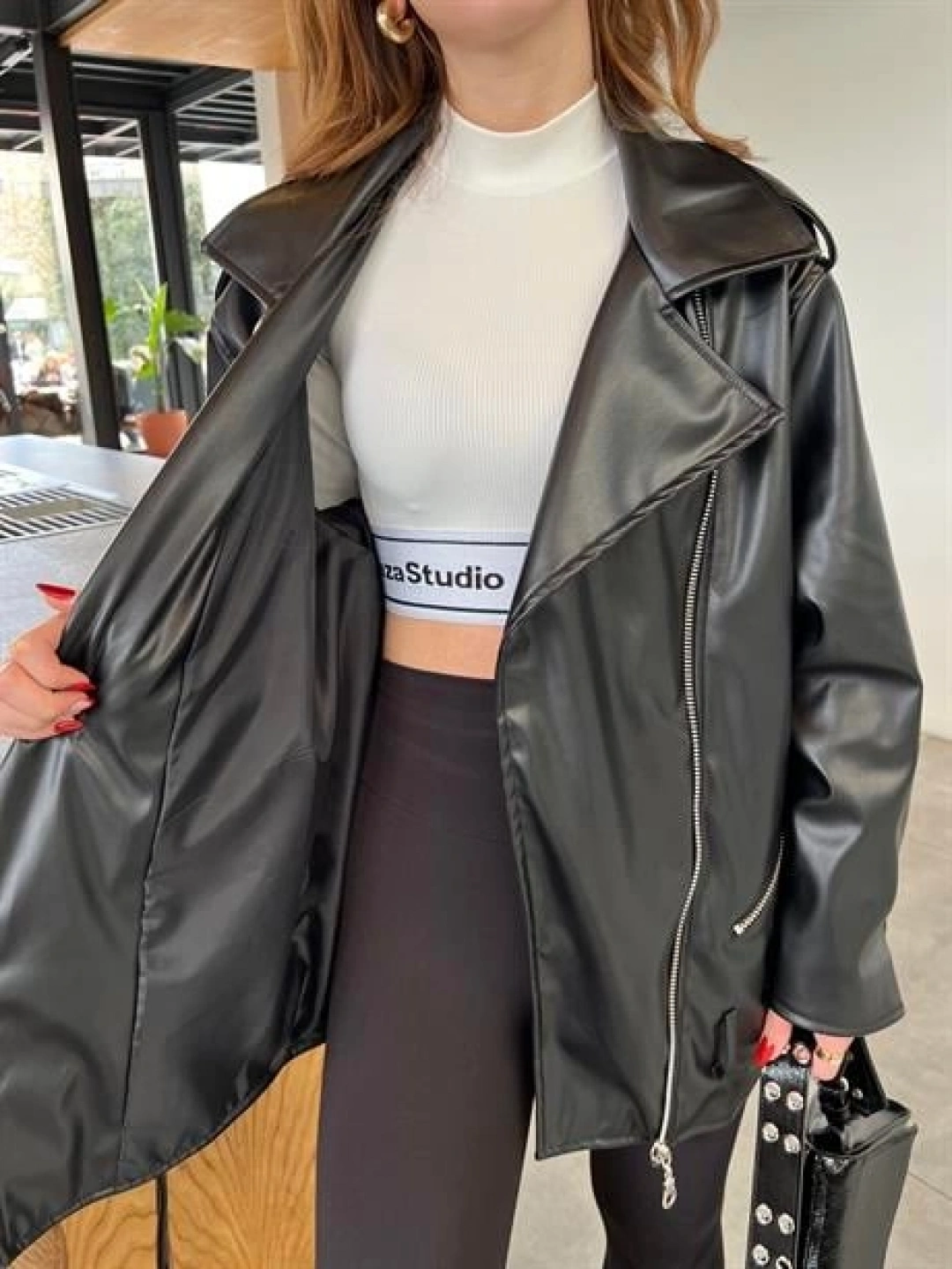 Zara Model Siyah Deri Biker Ceket