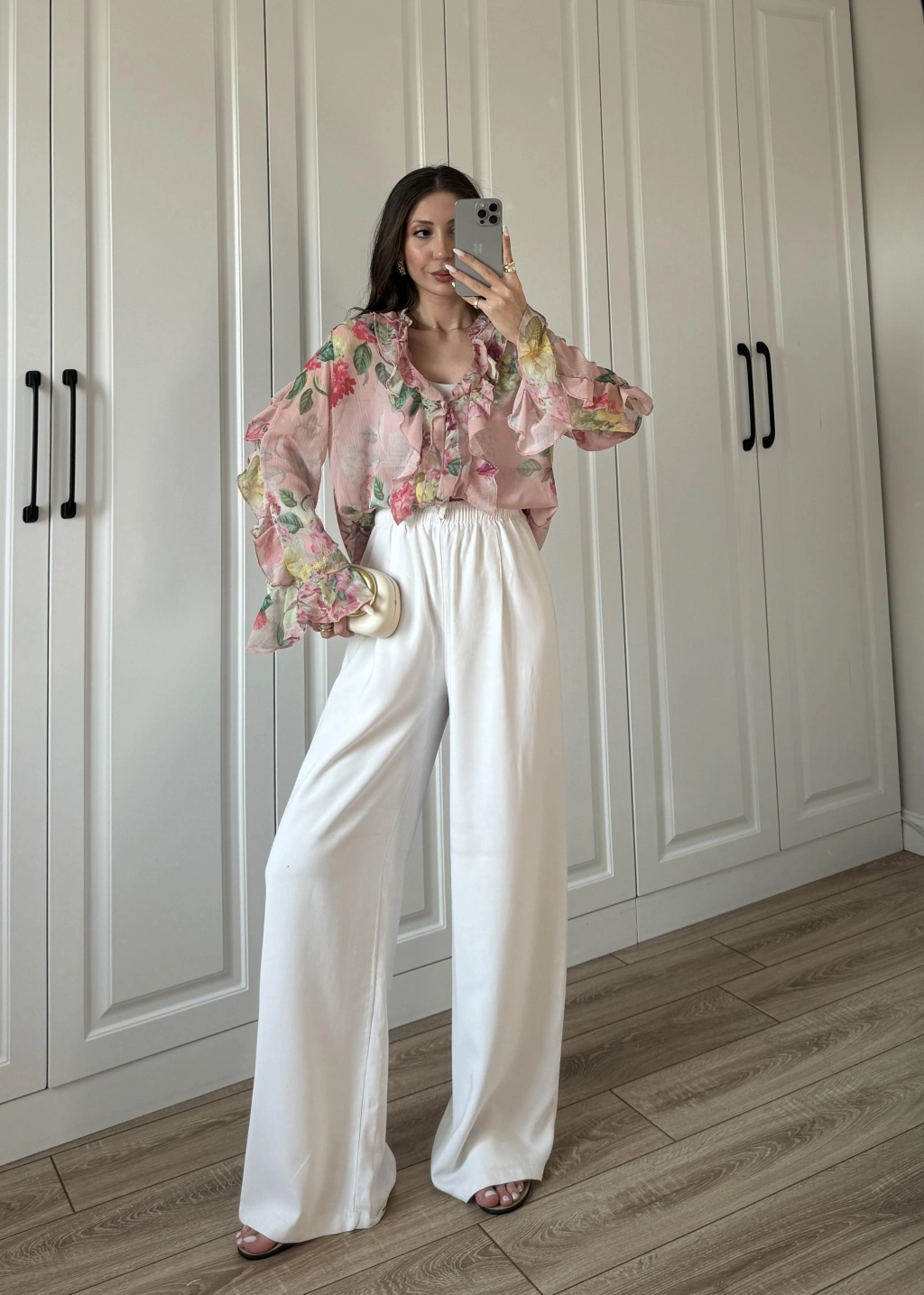 Zr Model Çiçek Desenli Fırfırlı Gömlek Bluz