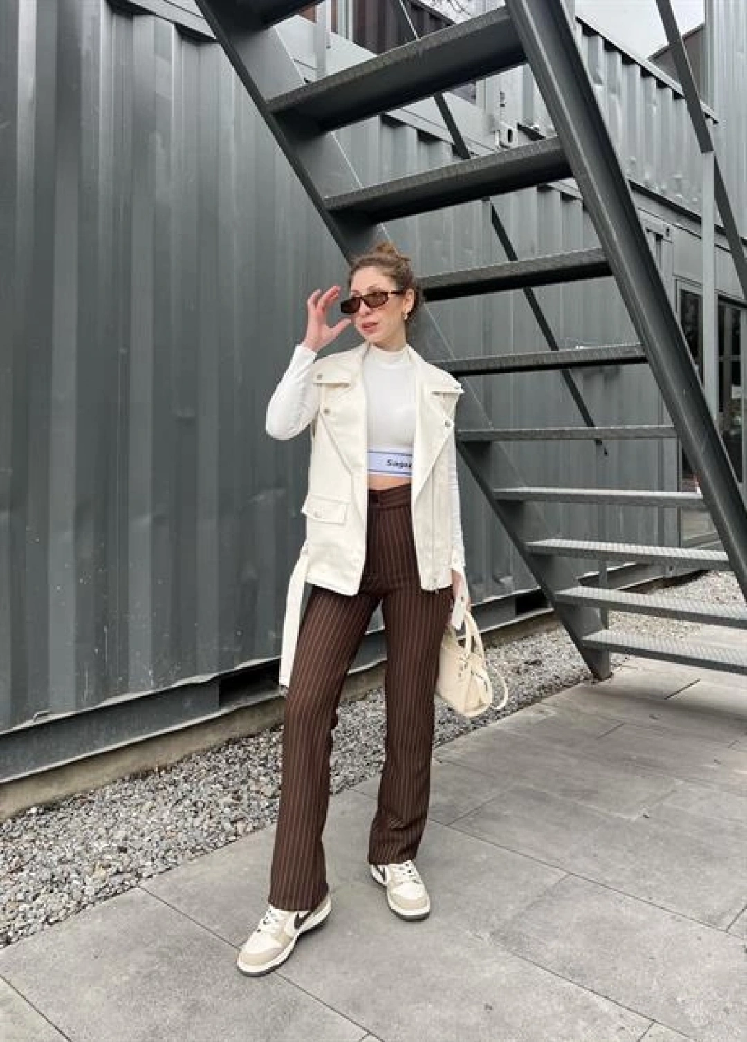 Vintage Kahve Astarlı Oversize Blazer Ceket