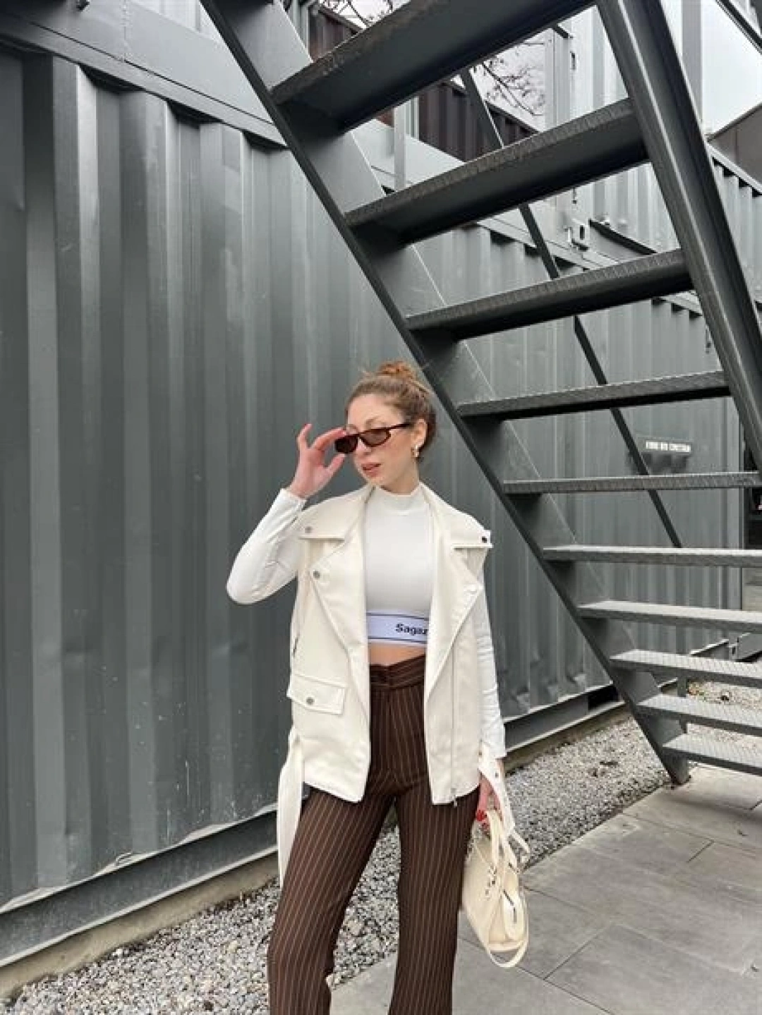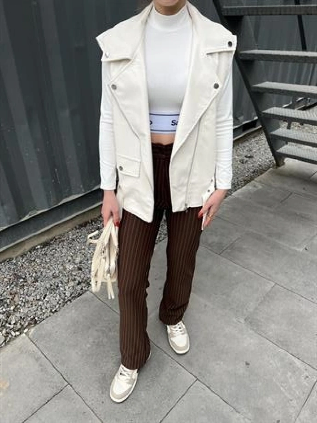 Keten Astarlı Bordo Çizgili Blazer Ceket