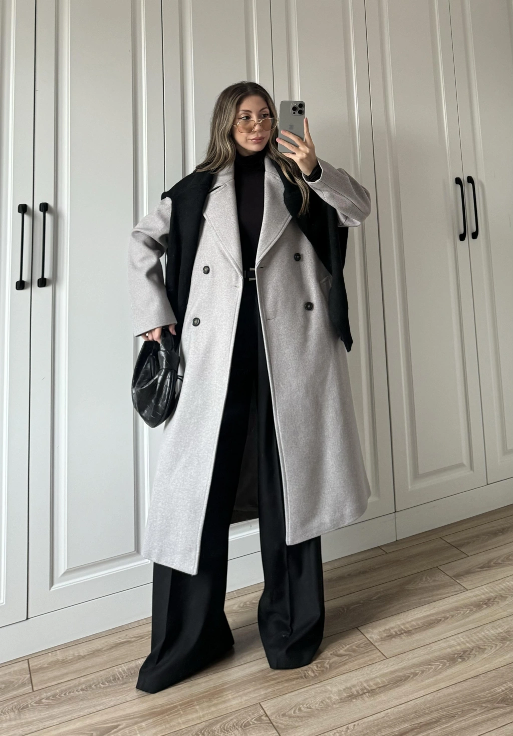 Oversize Premium Astarlı Siyah Yün Kaban