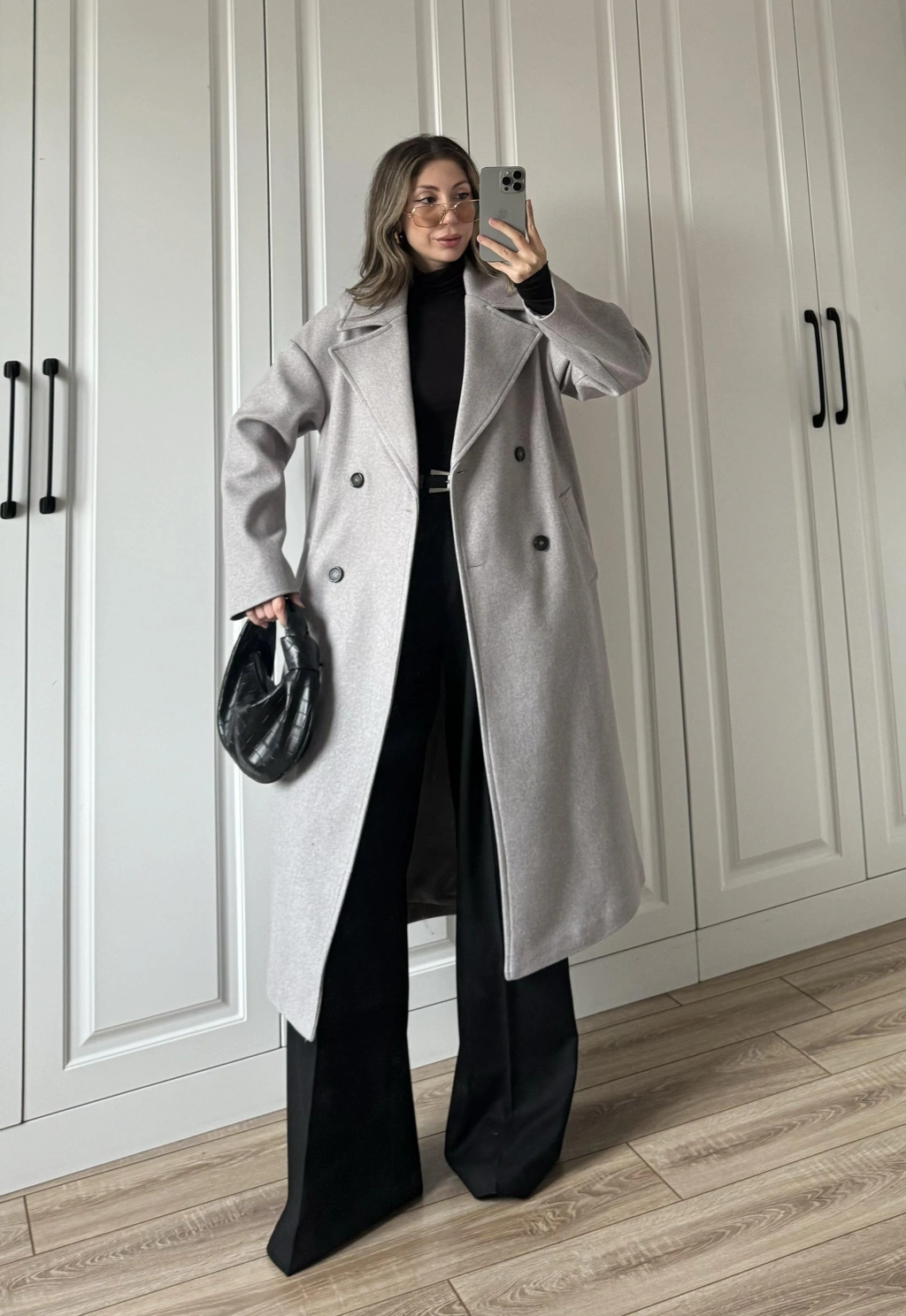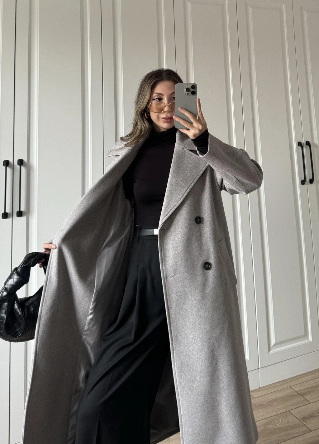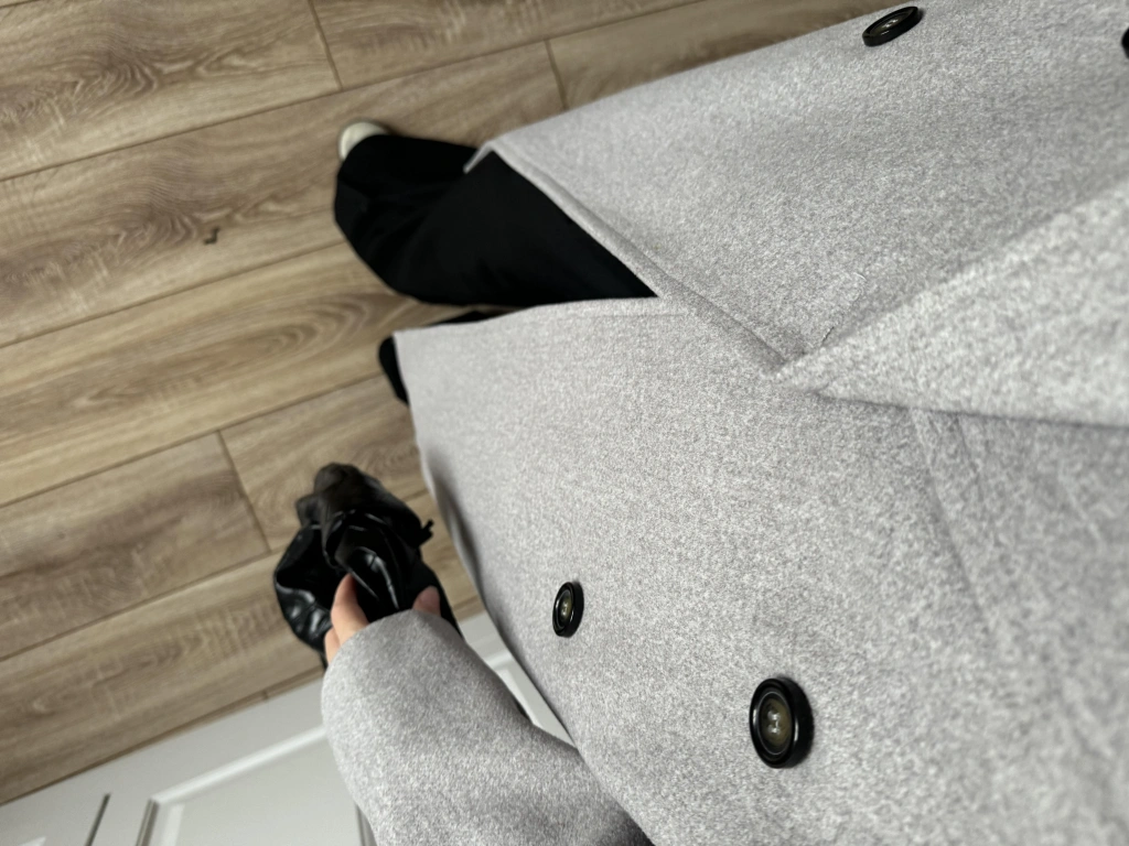 Oversize Premium Astarlı Gri Yün Kaban
