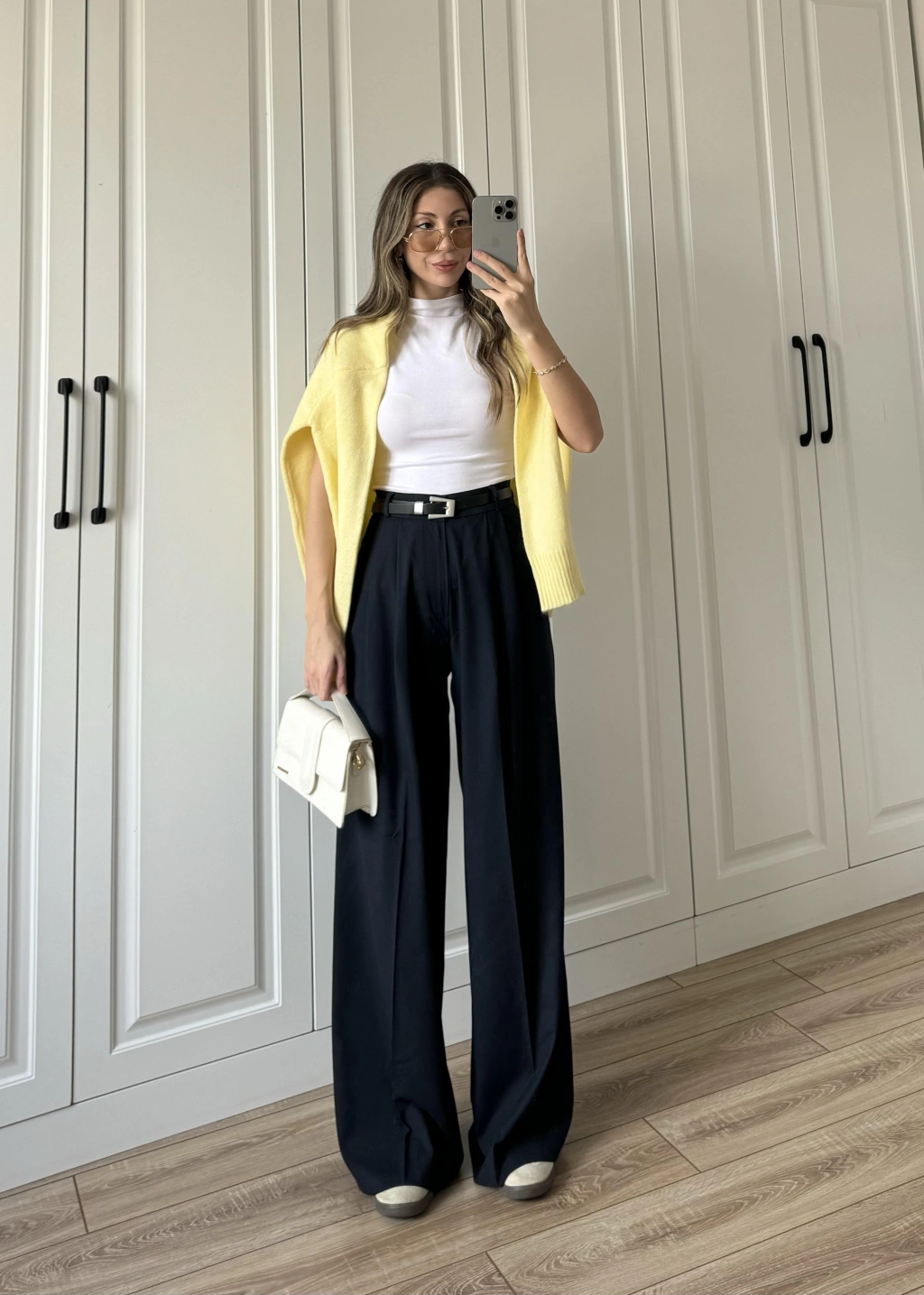 Bilek Boy Geniş Paça Lacivert Pantolon