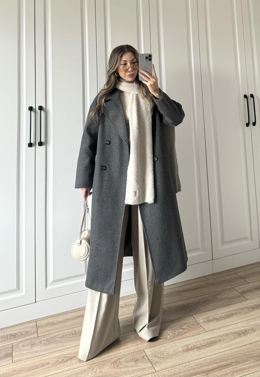 Beli Çift Düğme Detaylı Gri Kumaş Pantolon