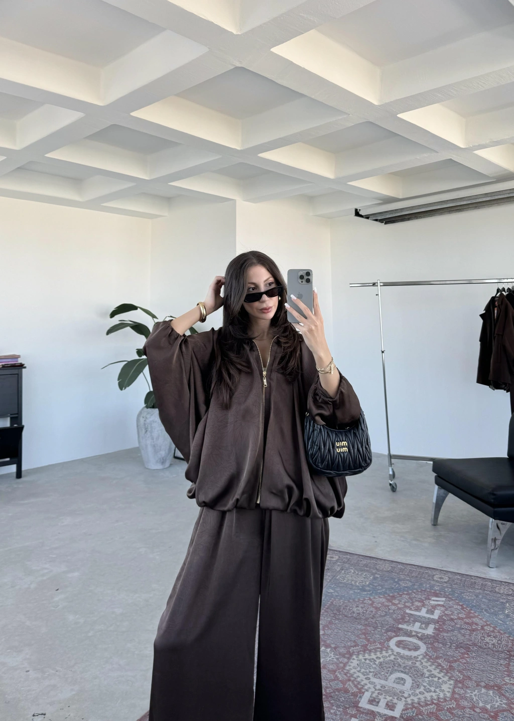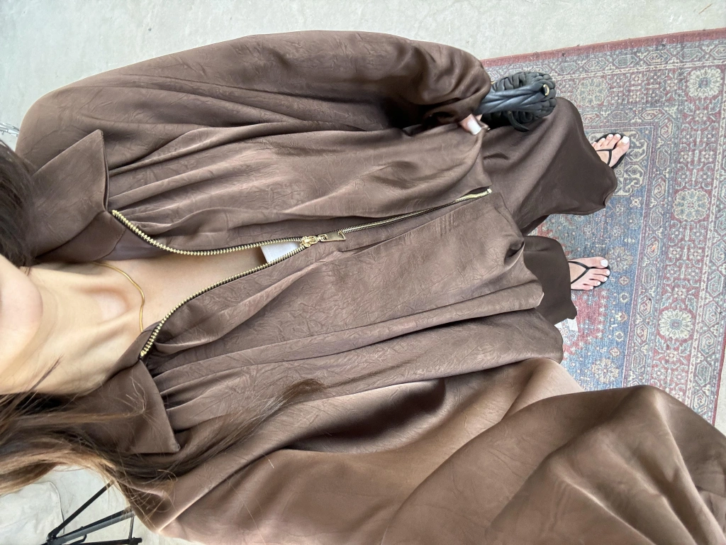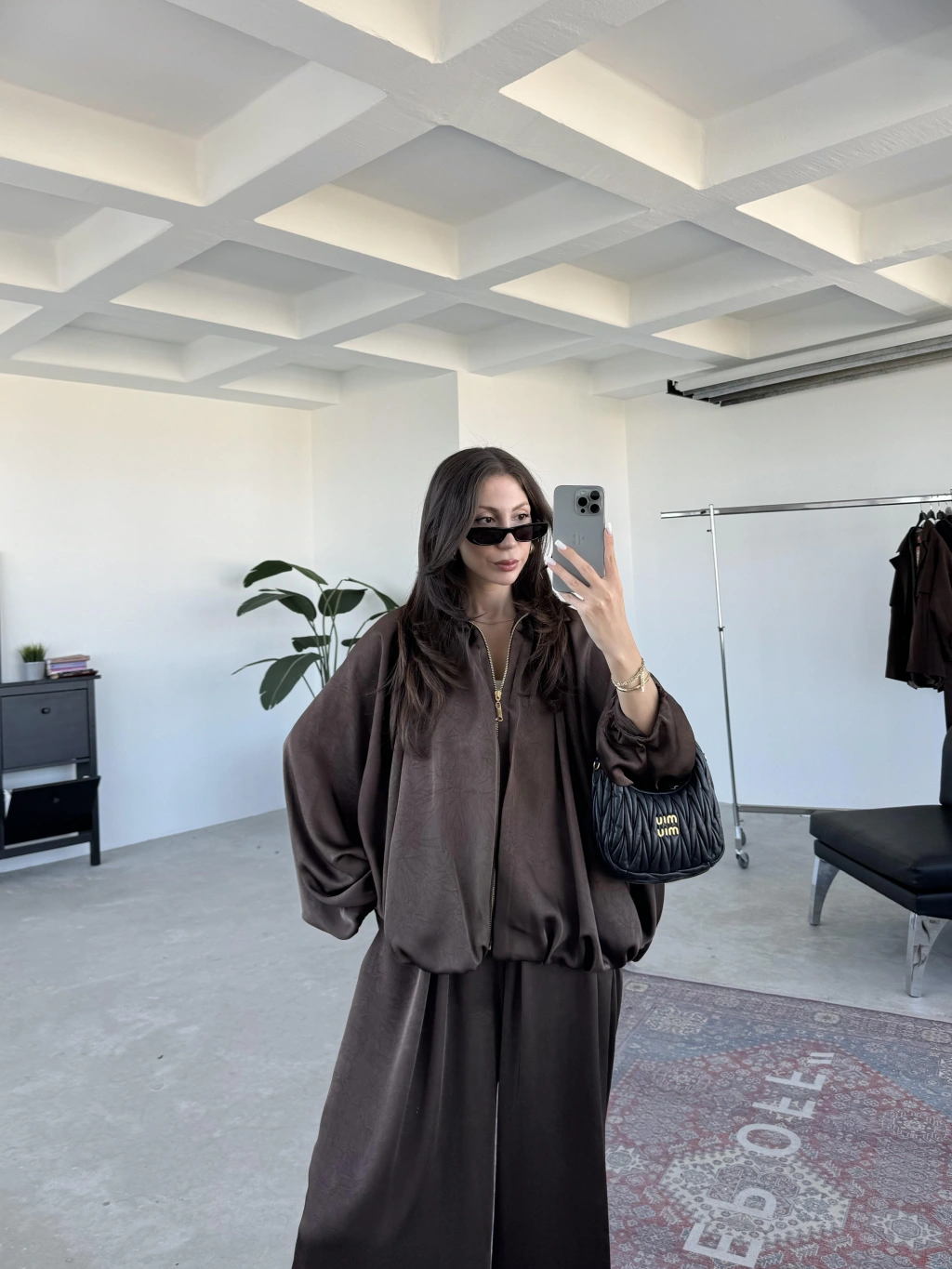 Vintage Kahve Astarlı Oversize Blazer Ceket
