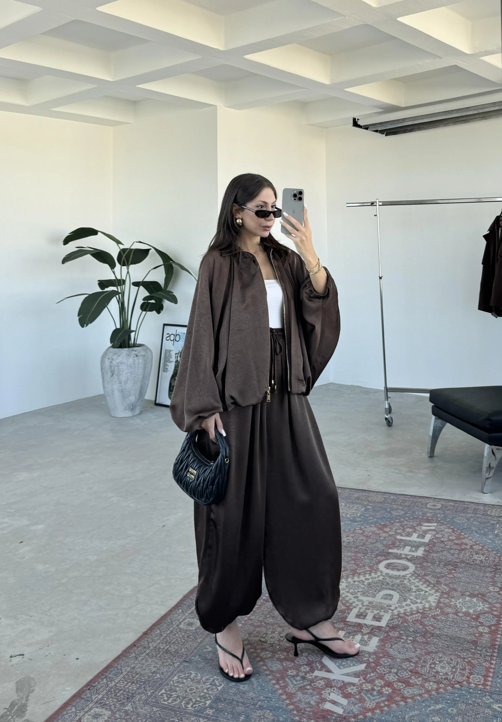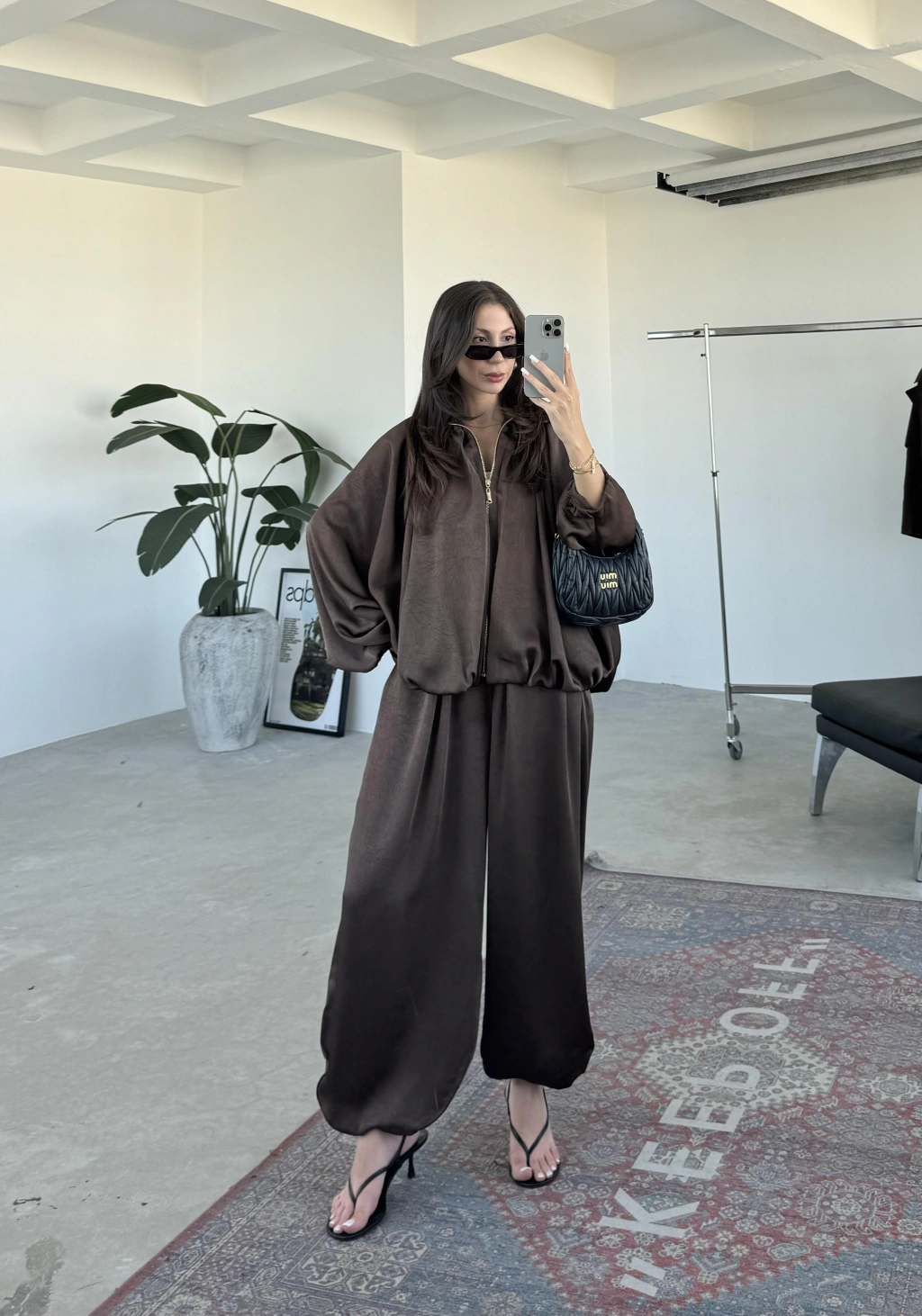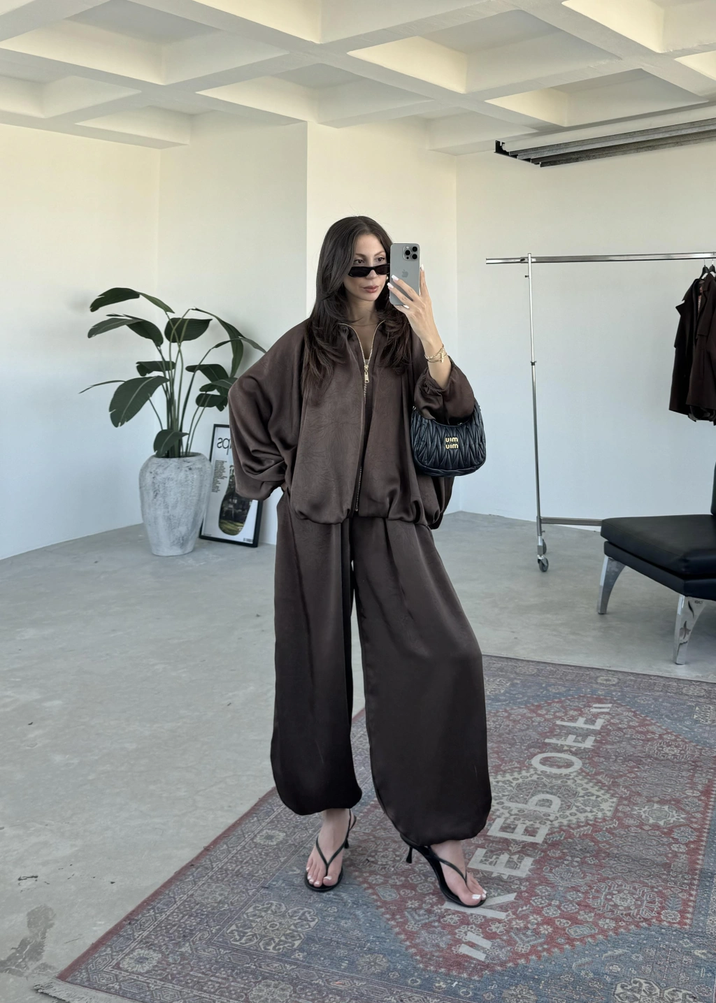 Vintage Kahve Astarlı Oversize Blazer Ceket